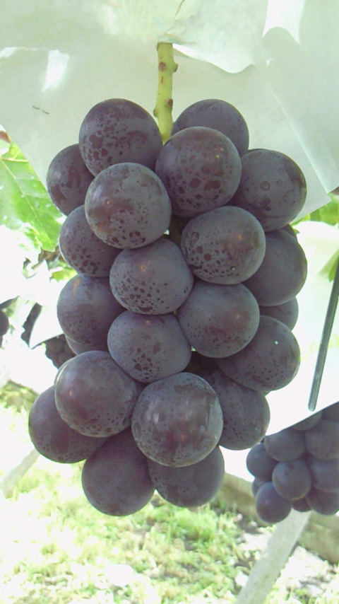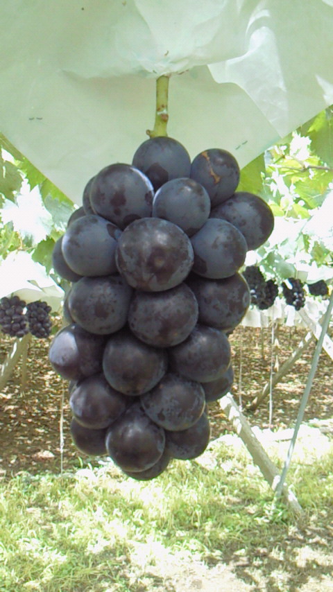当園では黒系大粒のブドウがぼちぼち出始めました。