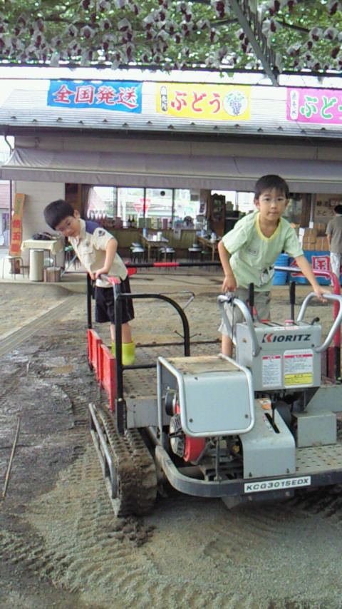看板息子はお友達がブドウ狩りに来てくれて大喜び
