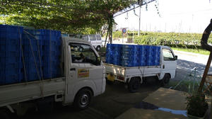 軽トラに積み込んで、ワイン屋さんに出荷です