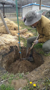 植えるための穴は直径1メートル近く、深さも50センチ以上