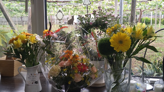 終電で花束や差し入れの段ボールを抱えて帰ってきました