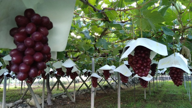ここ数年の暑さで、9月に赤系のブドウがなかなか収穫できなくて悩むのに、